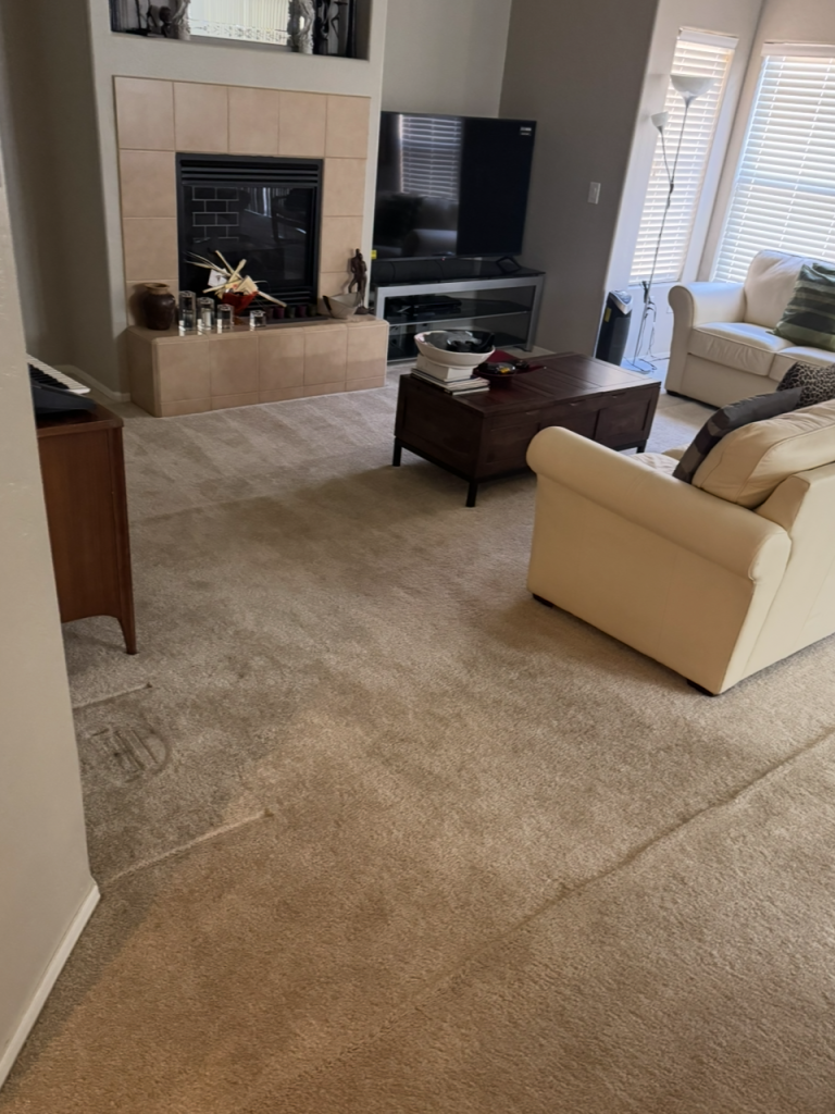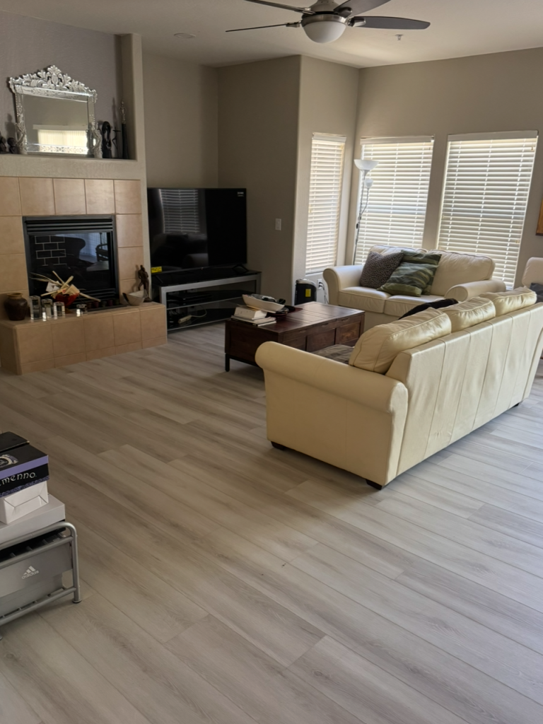 We replaced the dated carpet with luxury vinyl flooring for a sophisticated, low-maintenance upgrade. The cool-toned planks bring out the natural light and elevate the entire living space.