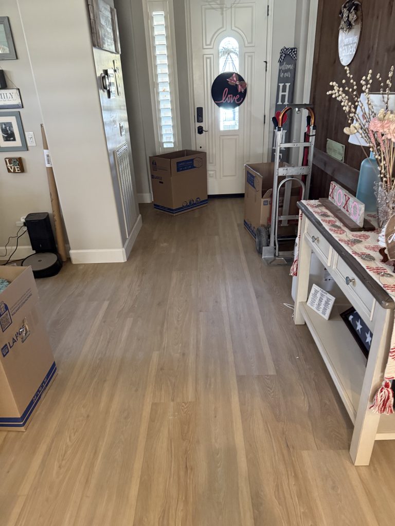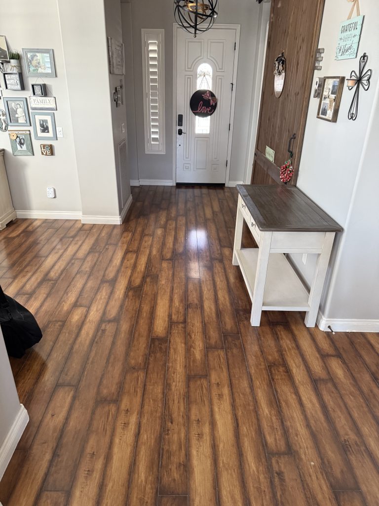 ✨ From outdated to outstanding! This entryway went from a worn-out wood pattern to a sleek, modern tone that brightens up the entire space. The lighter finish opens up the hallway and adds a fresh, contemporary look that welcomes guests with style.